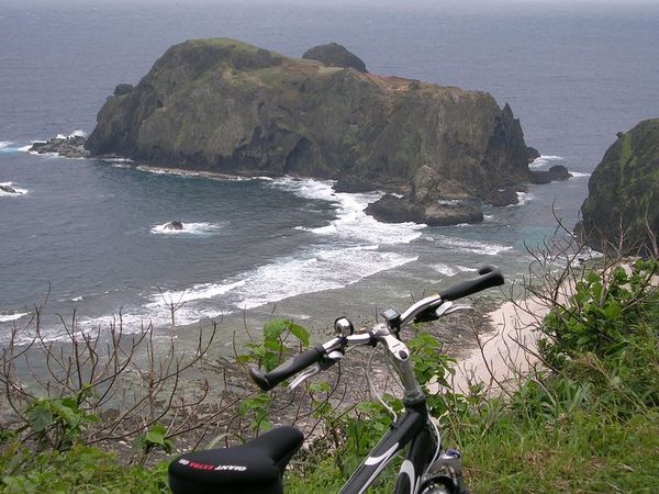 吃飽了就邊玩邊環島,由於晚上住這兒,所以非常悠閒的以時速10km上下慢慢逛,海風徐徐吹來舒服極了,比起上次大學畢業來玩時快被烤焦的天氣,真是差太多了。基本上綠島就一座山,一個陡升坡,一個陡降坡,就沒了,其他的問題都不大。