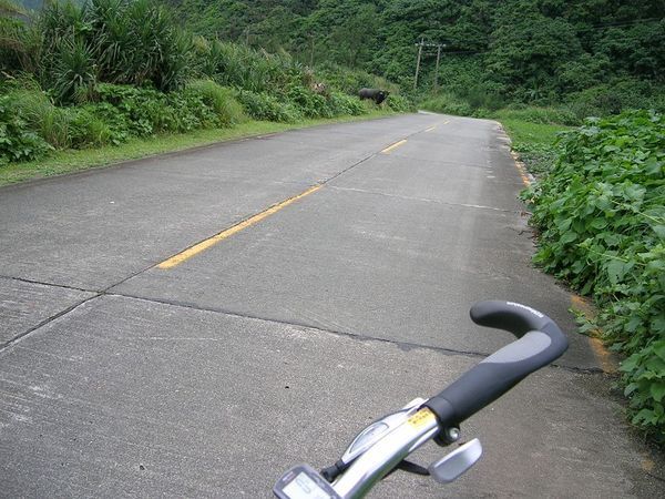 就在快到朝日溫泉前,大黑遠遠看到一個大型動物在看我們,天啊,是一隻水牛,好害怕喔,牠會不會追我丫?感覺比被狗追還可怕,不敢停下來和牠合照,在牠的目送下快速通過。