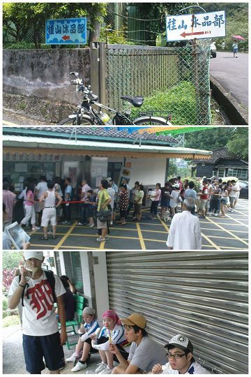 下山速度就快多了,沒一會兒就來到桂山冰品部,只是大伙哀哀叫,怎麼吃個冰還得爬個小陡坡,是故意要增加冰品的美味嗎?大家看看,大排長龍,都排到山下去了,很多口味都沒有了,不過我還是有吃到我想吃的米糕口味,讚!!
