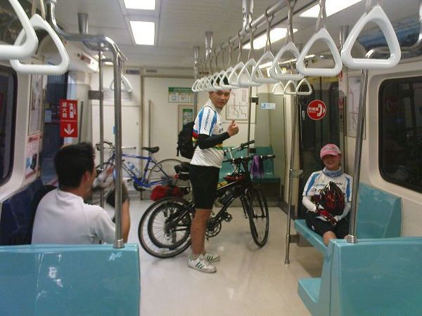 捷運下午4~7點禁止上腳踏車,不過幸好我們趕在這個時間衝上捷運,在捷運站就匆匆的向大家道別後,第一次就被騙來騎山路的紀先和晨峰決定繼續騎車回家,而其他人就坐著涼涼的捷運回家。在捷運上才發現大家累到了,不過肉腳團這次仍是漂亮的挑戰烏來成功,並期待下次的泡湯、芬多精之旅。