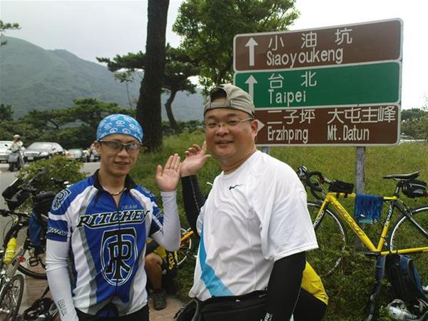 在二子坪還遇到指揮交通的警察伯伯跟他合照,原來也是個深藏不露的高手,還一派輕鬆的騎過紫薇森林。在短暫的休息後,RAY要繼續往上攻大屯山主峰的助航站,社區的鄰居們要從原路回風呂,而我則選擇往前走從仰德大道回家。這張是小油坑,最近對這地名很敏感,所以特別拍下來紀念。