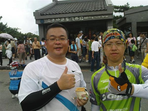 經過了整整三個小時的奮戰,雖然是最後一個到終點,不過還是很高興。看來大家都吃完了點心很久了,而領先集團的汗也都乾了吧~~再跟RAY來一張攻頂後的合照。
