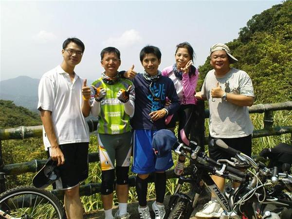 經過了班長這些日子以來的調教,終於有點明顯的進步了。這次幾乎爬到一半,到了山產店才第一次休息。不過還是騎了一小時又四十分鐘才到,不過比之前兩個多小時足足進步了四十分鐘左右。第一勇腳還是班長的愛將右護髮,只花了45分鐘就到了。前鋒集團合照。