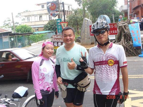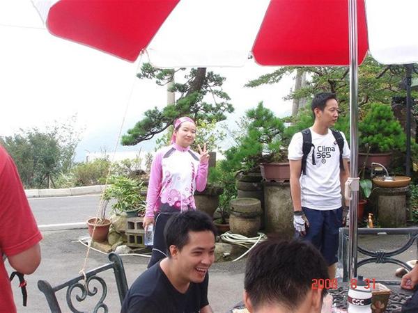 一路上隱隱約約覺得兩隻腳陣陣酸痛,只好假裝跟耿宏墊後趁機休息。一路上發現阿土的同學好強喔,不但一出發就衝出領先集團,連上坡都掛大盤練車,不過大概他低估了這緩坡的長度,再加上一早就遠從新竹趕來騎車,在到第一個警察局時因身體不適,只好提前反航下次再來攻頂。