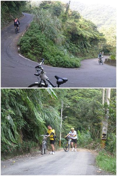 。連大黑都忍不住在研究這路況是怎麼回事啊?原本不打算牽車的我也沒辦法,一旦停下來,就只能牽到稍微平緩的地方才能再騎,而林大哥也覺得車頭一直有浮起來的感覺...。