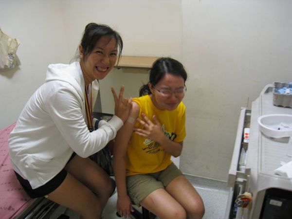 經過這段波折,除了激發我的體能外,也讓我更加酸痛,一路全力的騎車回家拿健保卡去醫院,下午開完會就攤在床上直到早上。在此要告訴大家,騎車出門安全配備不可少,至少要戴安全帽、手套、健保卡。因為就在醫院等藥時,又送來了一個傷患,也是騎單車在滿月圓的路上摔車,情況比蟹兒更嚴重,而且也沒有熱心的鄰居相陪,連他們的腳踏車都還是坐著救護車一起來醫院沒人照顧的被丟在門外。