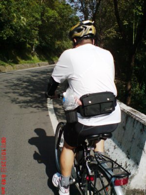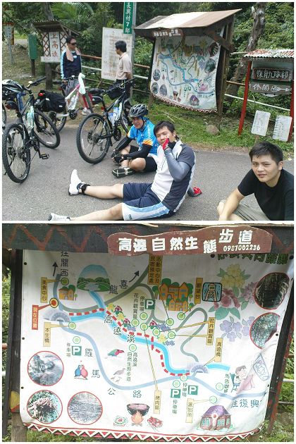 在爬的上氣不接下氣時,忽然在一個路口看到廖大哥向我招手,呵呵~~果然是我太慢了,讓大家擔心一下不知我龜到哪裡,差一點要回頭找我,謝謝大家的關心,原來大家打算在復興橋這兒休息。不是我愛說,這裡遍地是黃金,走直線一定會踩到很多沱,只能盯著路上走S型的。