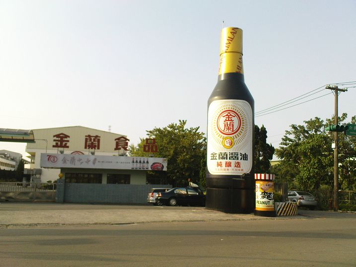 王大哥帶大家從八德轉鶯歌的路回風呂,一路上還真的只有下坡,不像台三那樣上上下下的。途中在路邊看到超大瓶的金蘭醬油。
