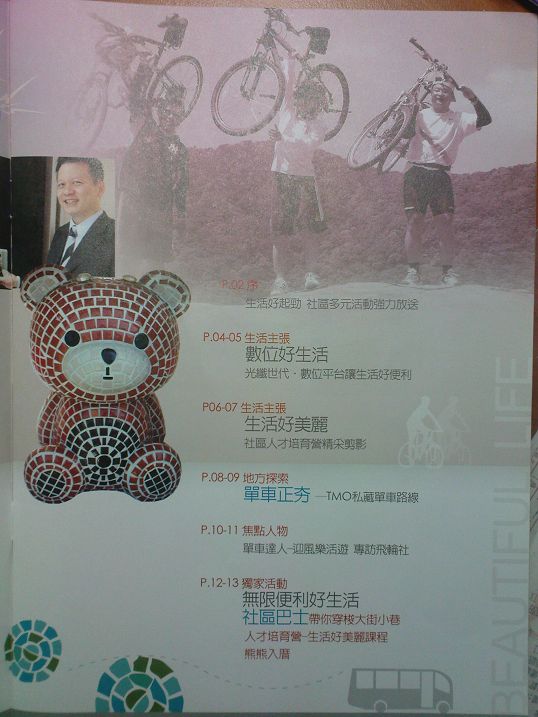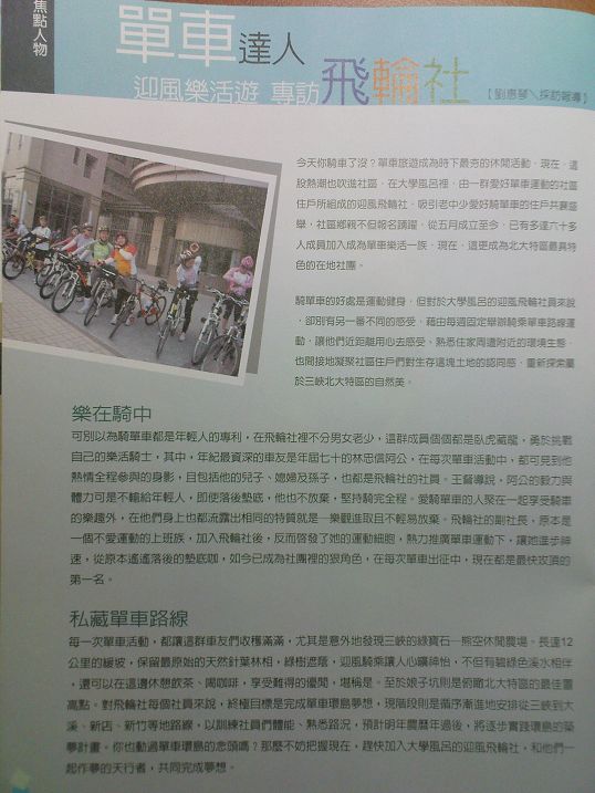 連蟹兒也上封面了。每次出發前大伙總是習慣在社區門口拍一張合照,蟹兒很少跟大家一起出遊,只是我也懶得比對編輯是用哪一次的照片。不過隱約看到69歲信哥的身影,可能是去烏來那一次吧。