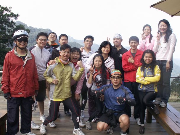 在大家休息吃早餐時,還聽說副社長和林大哥不見了,大夥猜測他們八成相約去攻頂了,打算學阿塞不落地上熊空,於是請保母車先送早餐上去。搞了半天原來勇腳們攻錯頂了,他們走錯叉路,沒攻到熊空農場的平台,而是到了另一個不知名的山頭去了,據說多騎了八公里多的山路,還被採檳榔的農家笑...