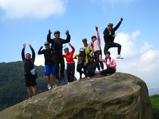 吃飽喝足了就上路了準備最後這一段攻頂,達成今日此行的目標。可惜的是妞妞姐得回家送妹妹上學,而蟹兒也只能跟著回去繼續"報佳音"。不改飛輪社本色,硬是在大石頭上玩十連拍,看看最右邊的林大哥跳多高丫,可惜我跳不動啦~~