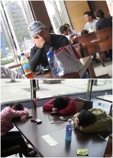 飛輪社雖然是號稱吃吃喝喝社,但一路上還玩好多次的十連拍,再加上越嶺,回來時大家都累攤了,在等待午餐時偷偷瞇一下。