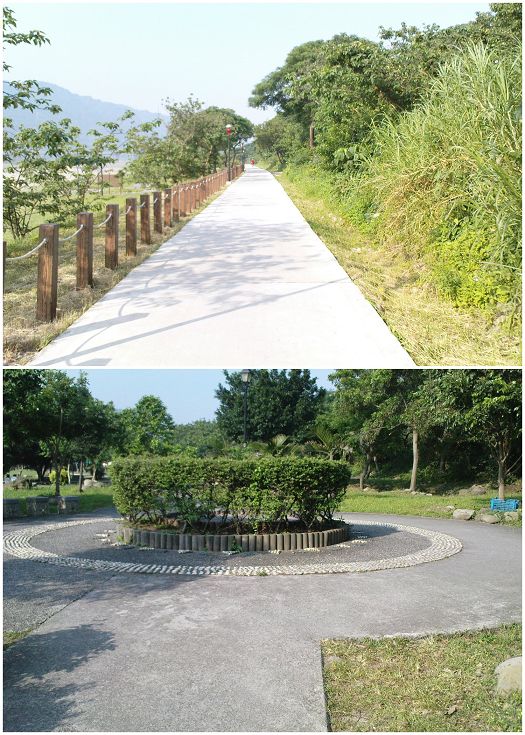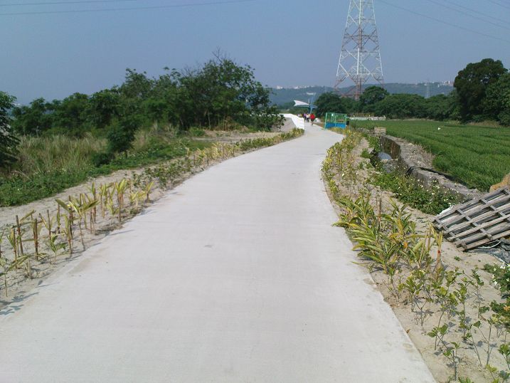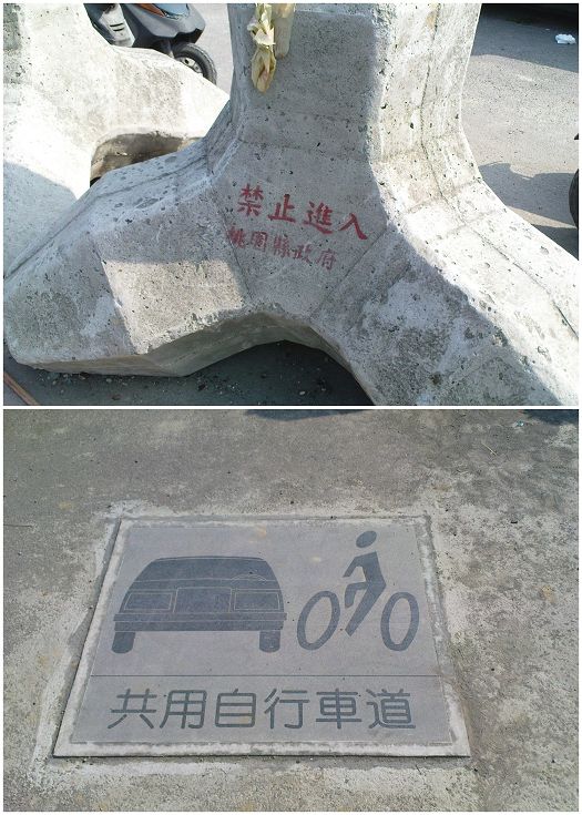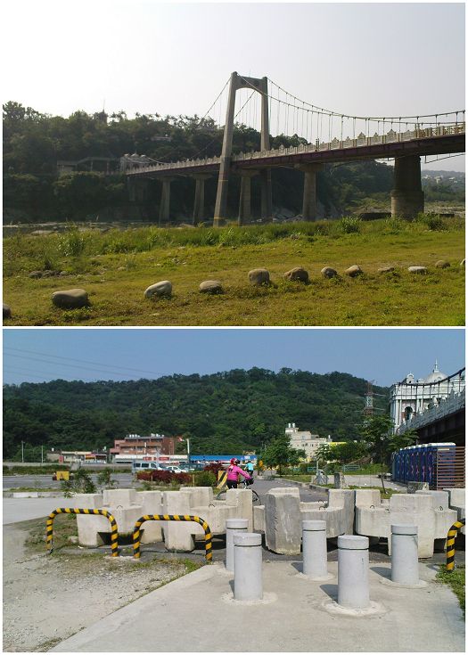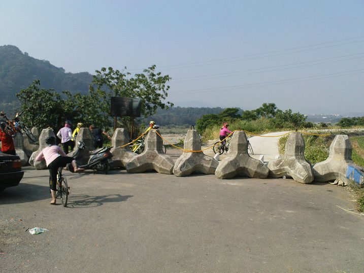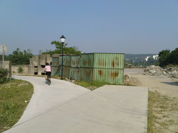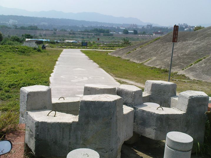 到了這兒就是台北縣和桃園縣的交界處了。下面的人工石礁是桃園縣政府放置的,因為這段自行車道還沒完全做好,因此還沒有對外開放。