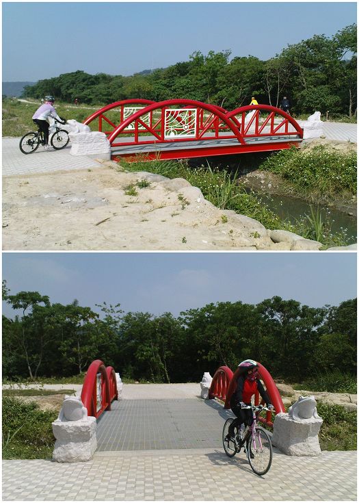 這裡就新蓋好的自行車道入口處。背後的大橋就是三鶯大橋。第一和蟹兒來探路時,都還沒蓋好呢,才一年多的時間就變得很不一樣了呢。![]()