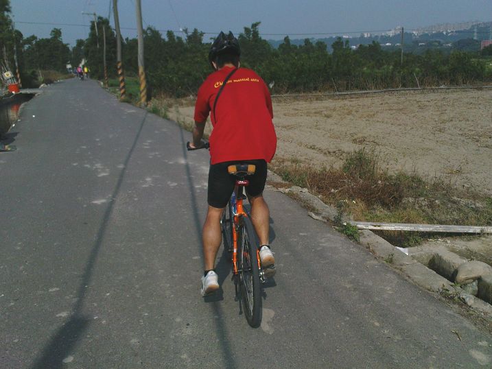 這一路上大家慢慢騎邊拍照,這對習慣重口味的侑騰教練來說,可能有點太過無趣。他已經開始在練習如何用一隻腳騎單車,而且不用卡踏,還要騎在大家的前面。老實說,我還真的得用點勁踏才追得到他後面照像。