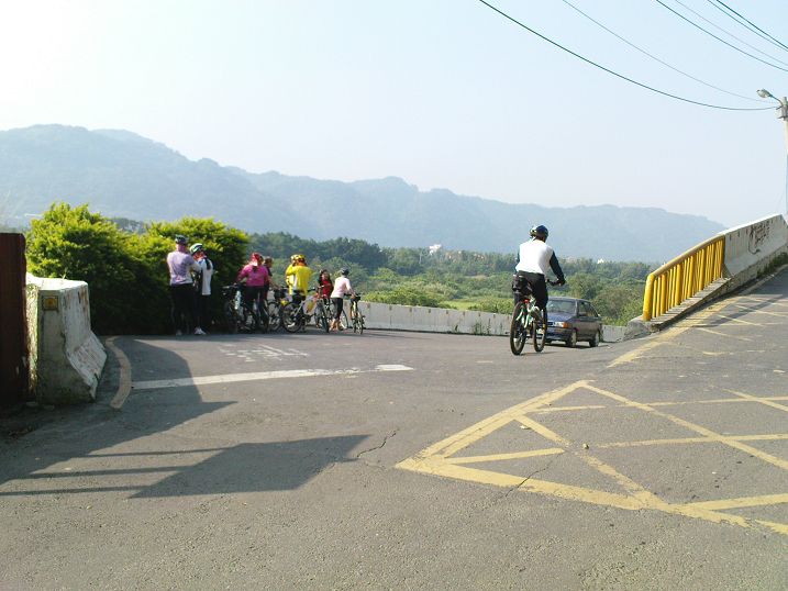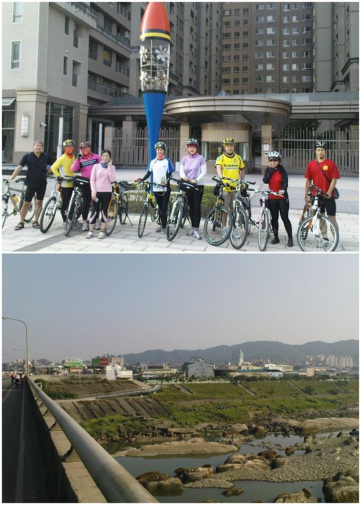 這是今天出發的勇腳,而難得的是侑騰教練,平常都習慣騎重口味的路線,今天也陪我們吃點清粥小菜。在三鶯大橋上就可以看見已經蓋好的自行車道,也就是我們今天目的起點。往照片的左手邊方向走是通往大溪的方向,右手邊則是往淡水八里的方向。
