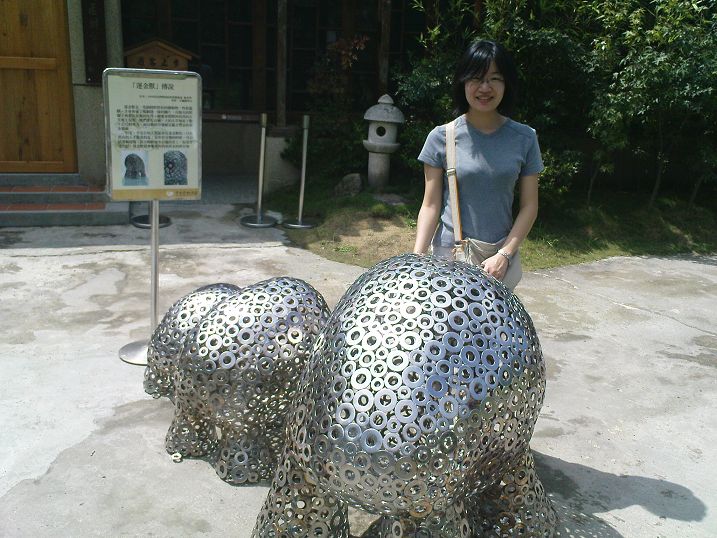 而下面這三隻金屬的動物則是叫做「運金獸」,看看蟹兒和牠們合照後,會不會也搬回來一些金子。