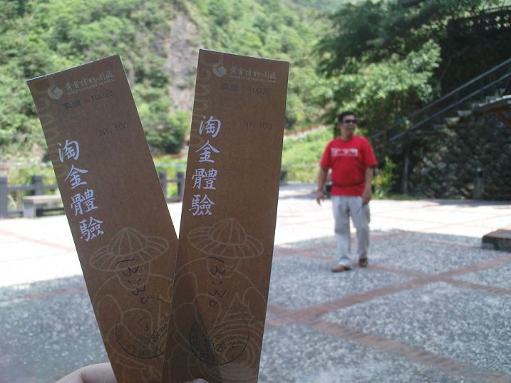 $100塊裡頭還包含了一個小瓶子,如果照著解說員的方式一步一步做,做的技術好就可以把金砂裝在小瓶子裡帶回家做紀念。各別小看了這盤不起眼的砂石,珍貴的金砂就藏在這裡頭。