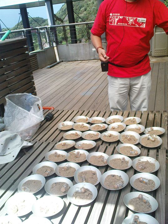 首先先自己選一盤順眼的砂石,裡頭有多少金子則是聽天由命,不過才$100塊,各位也不用笑想館方會給你多少金子啦~~。