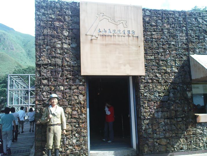 今天正好有捐發票的活動,只要有一張發票,就能免費換一張入園門票。再進到遊客中心前,還看到一位盡職的礦工在門口站衛兵,不過怎麼還有一個背後靈啊...